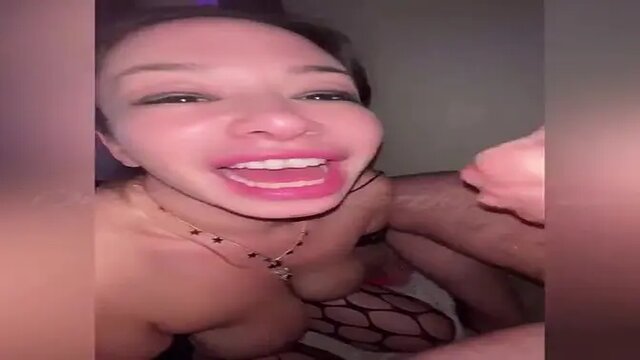 Naughty Natthychilena gives a steamy blowjob with lots of saliva. She deepthroats his shaft and moans loudly as she sucks him. He cums all over her pretty face.